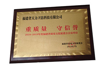 福建省政府からの価値品質と名誉の約束証明書